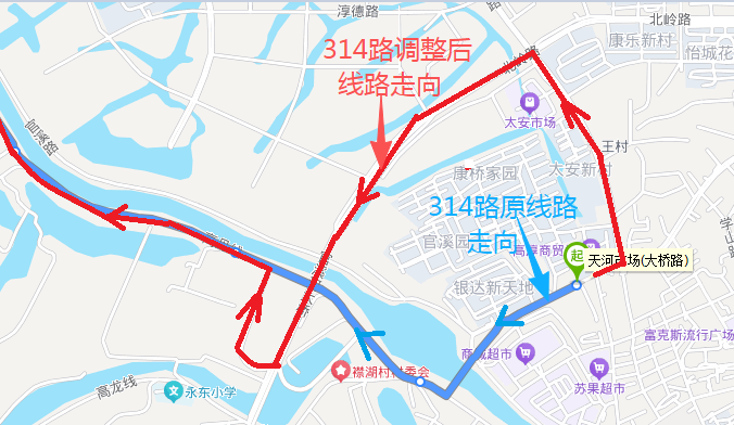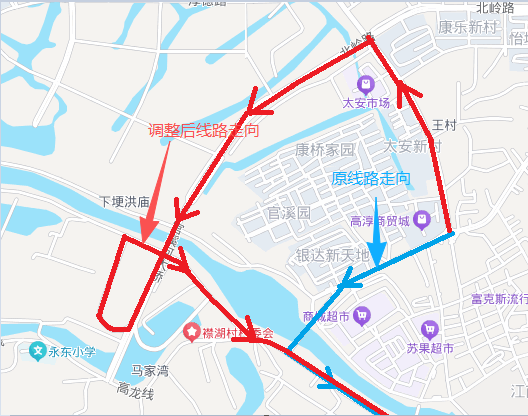 調整后運行線路走向:淳中路口—康橋家園—王村—官溪河大橋—襟湖村—觀音閣—紅廟閘—原線路不變,不再停靠:天河市場等站點,新增:康橋家園、王村、襟湖橋等站點。